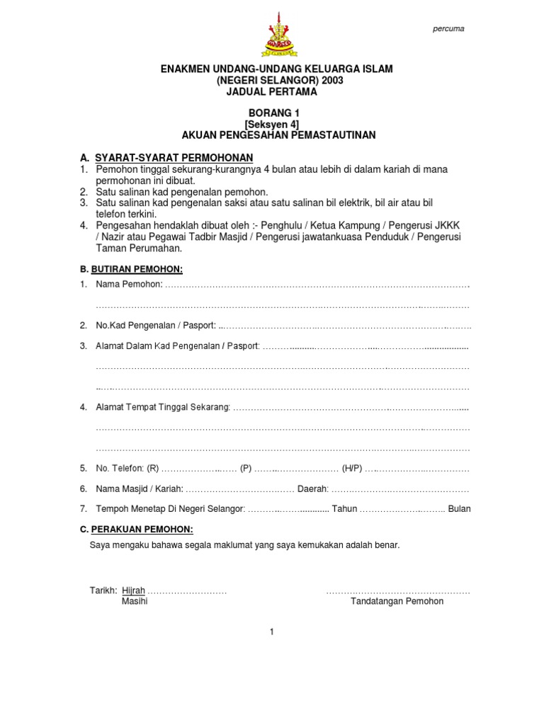 Borang Pengesahan Pemastautinan Oleh Penghulu Pdf