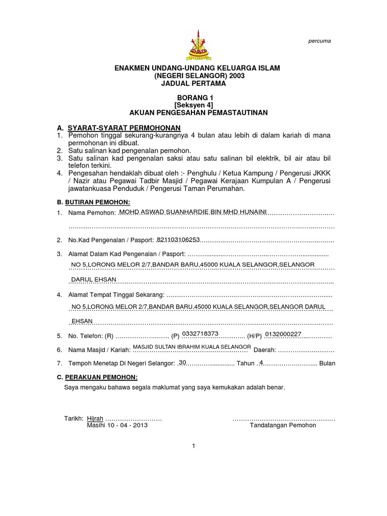 Pengesahan mastautin akuan pengesahan mastautin contoh surat mastautin yang boleh digunakan di semua negeri untuk kahwin tuntutan mahkamah. Surat Pengesahan Permastautin ini adalah WAJIB diisi bagi pemohon ibu dan bapa bagi KELAHIRAN BUKAN DI NEGERI SELANGOR sahaja. BORANG PENGESAHAN PEMASTAUTIN OLEH.